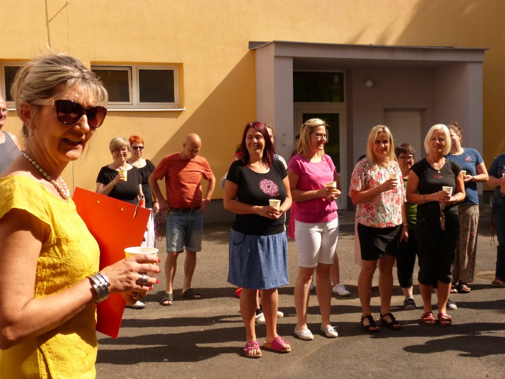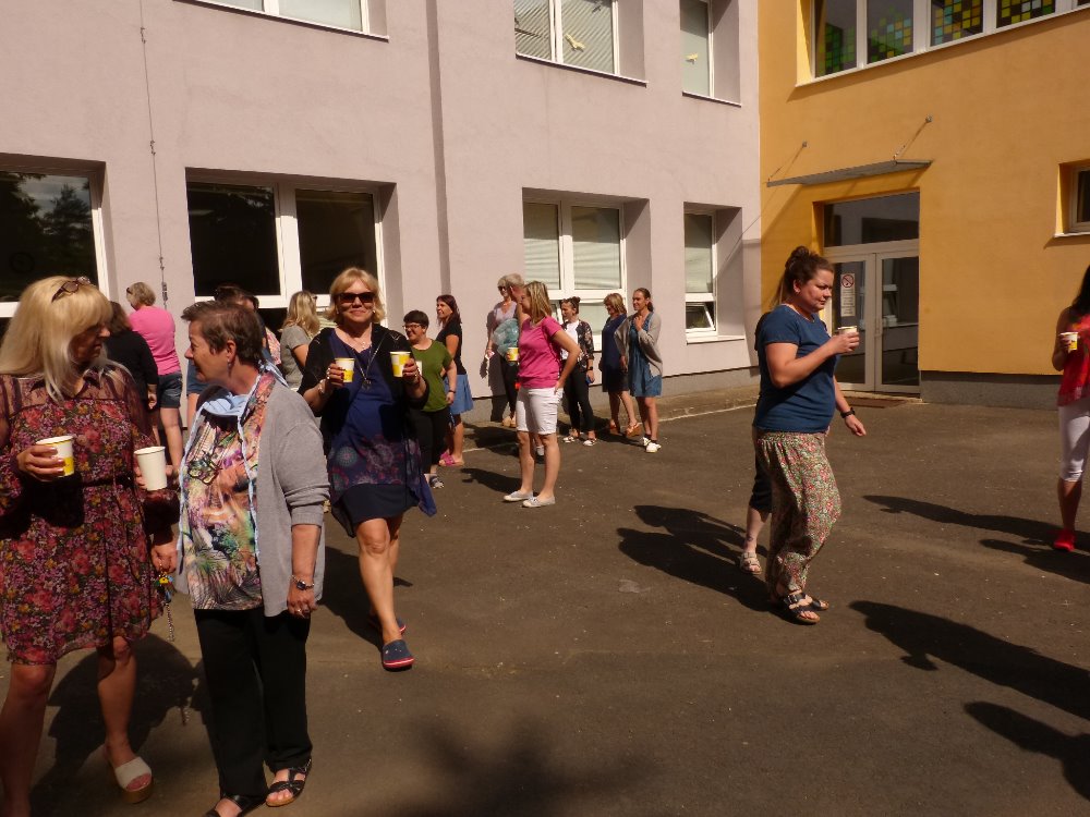 Paní ředitelka poděkovala našim pedagogickým pracovníkům za jejich usilovnou práci v době nouzového režimu na školním pozemku. Po pg radě sezvala všechny zaměstnance, aby společně celý pozemek prošli a pokochali se jeho úžasnou uspořádaností.